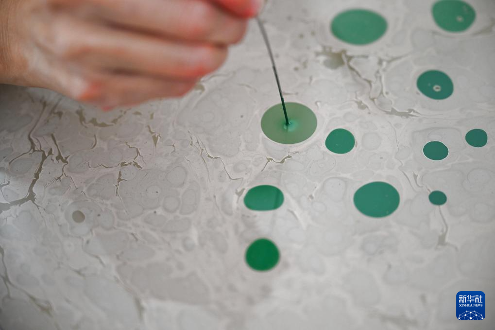 土耳其水拓畫是一種“水上作花、紙拓成畫”的古老繪畫技藝,2014年被聯合國教科文組織列入世界非物質文化遺產名錄。
