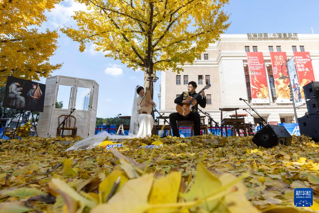 當日,一年一度的“銀杏音樂會”在上海音樂廳南廣場舉行。在銀杏樹下,音樂家們傾情演繹,為市民帶來沉浸式海派情境藝術盛宴。