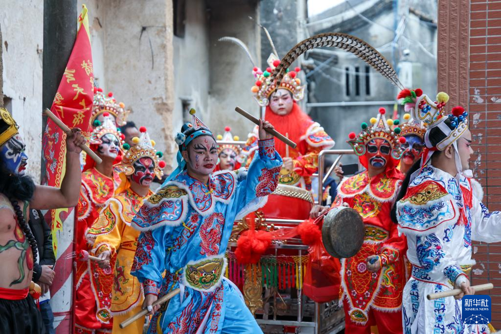 12月9日,貴嶼鎮后望村英歌隊在巡游途中表演英歌。