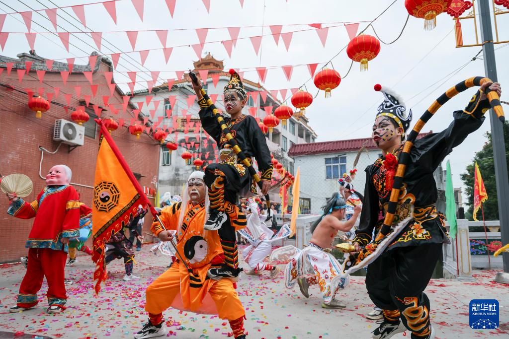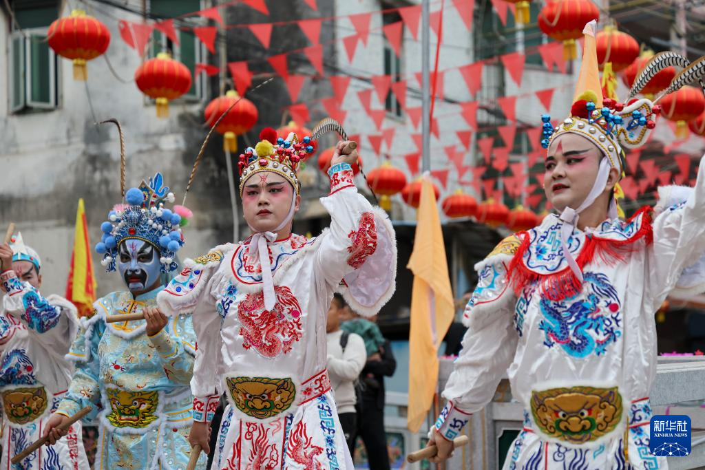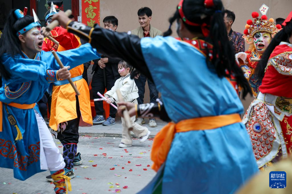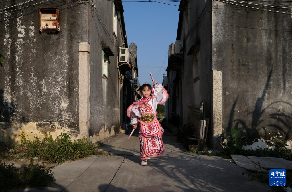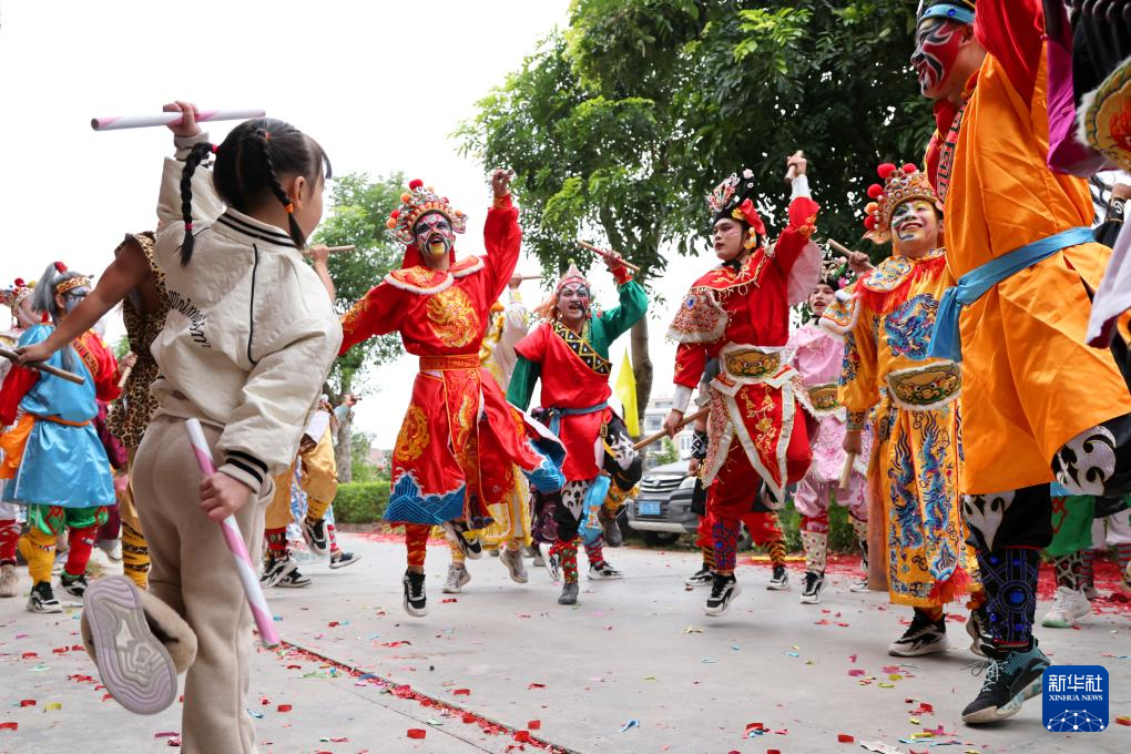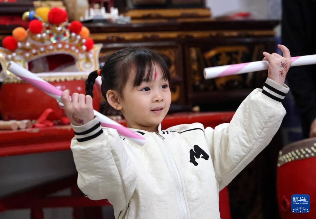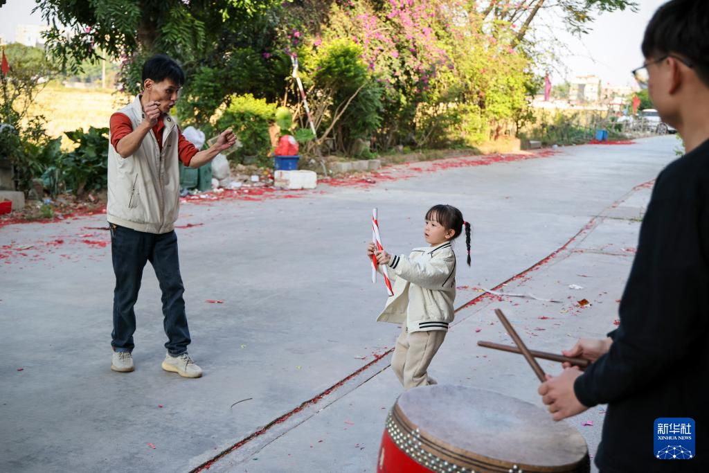 12月9日,廣東省汕頭市潮陽區貴嶼鎮玉窖村舉辦民俗活動,5歲女童莊恩琪手持英歌槌,跟隨鼓點節奏與當地的英歌隊員一同起舞,動作有力且充滿韻律,贏得了在場觀眾陣陣掌聲。