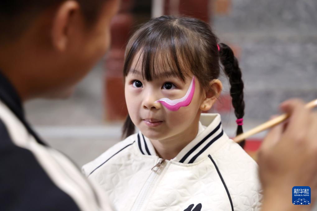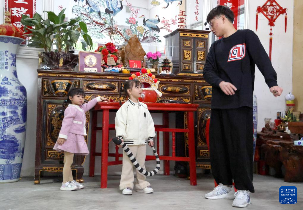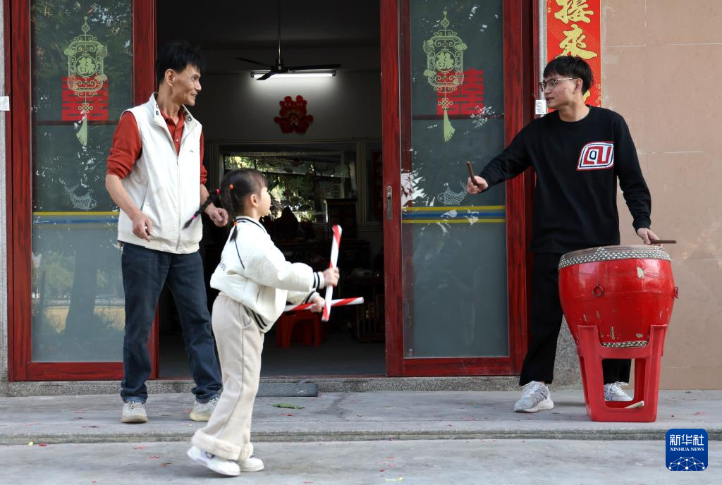12月9日,莊恩琪在爺爺和爸爸指導下跳英歌。