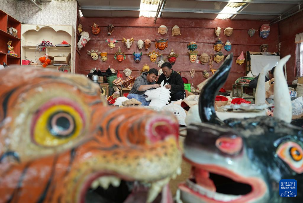 12月9日,合作社的工匠在查看西藏傳統面具。