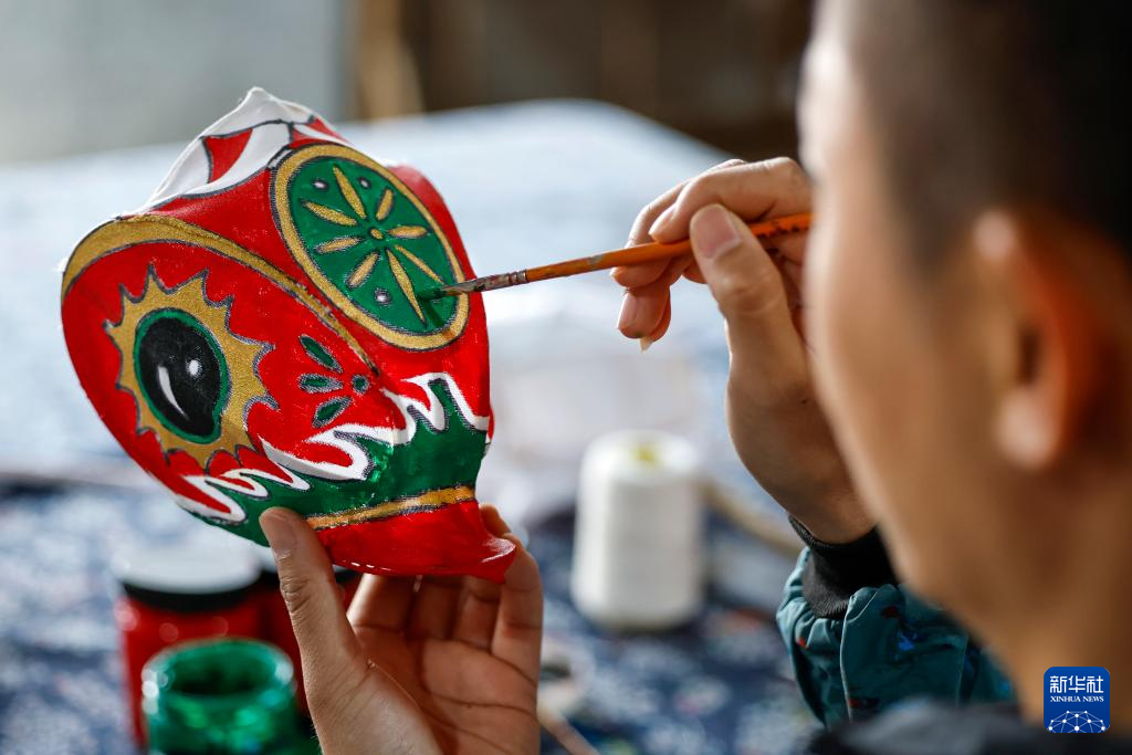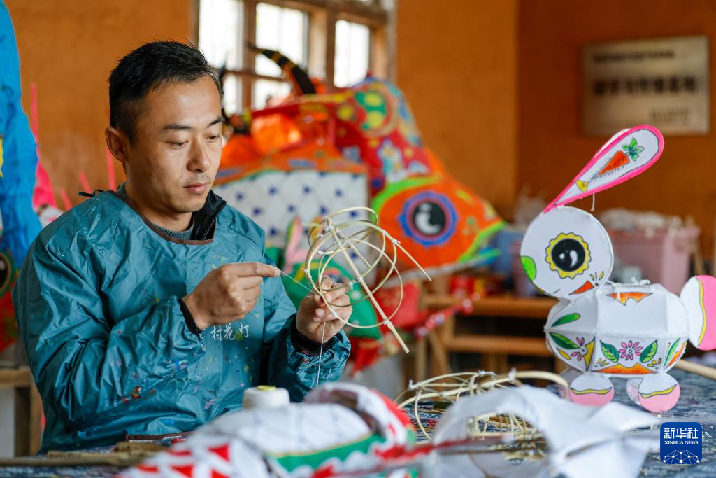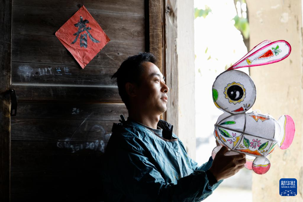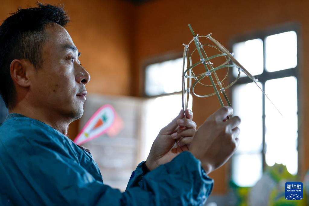 12月9日,在安徽省黃山市黟縣宏村,何繼星在制作花燈。
