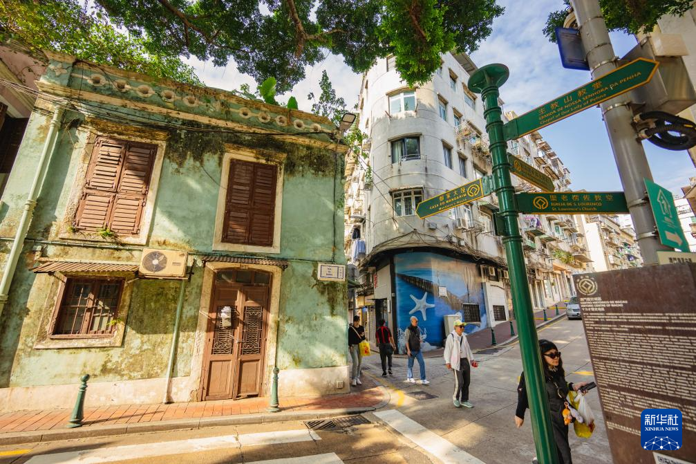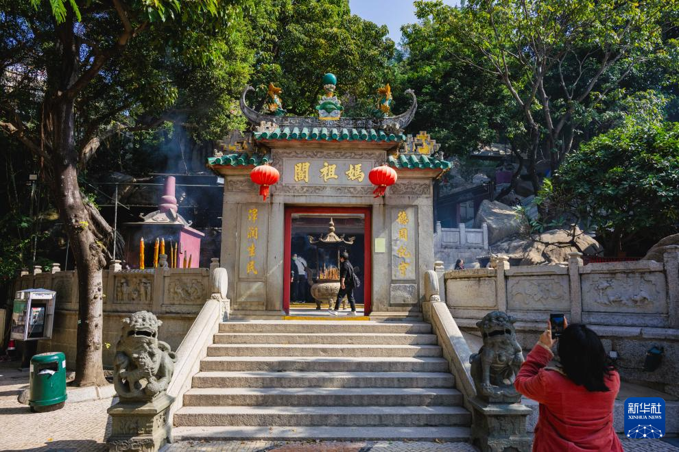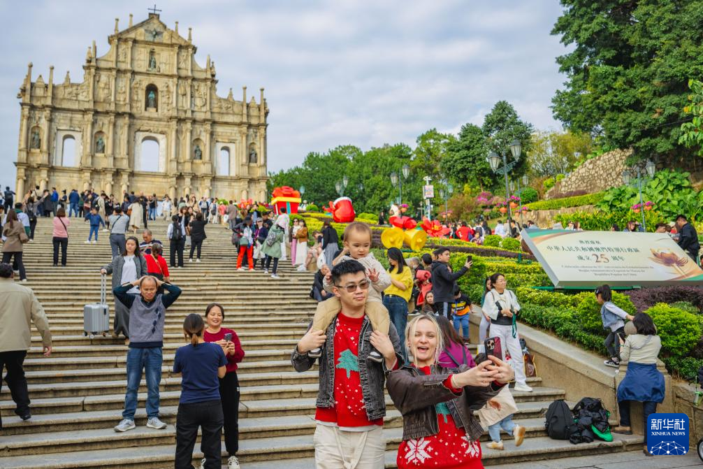 這是12月12日拍攝的澳門大三巴牌坊及其周邊建筑。