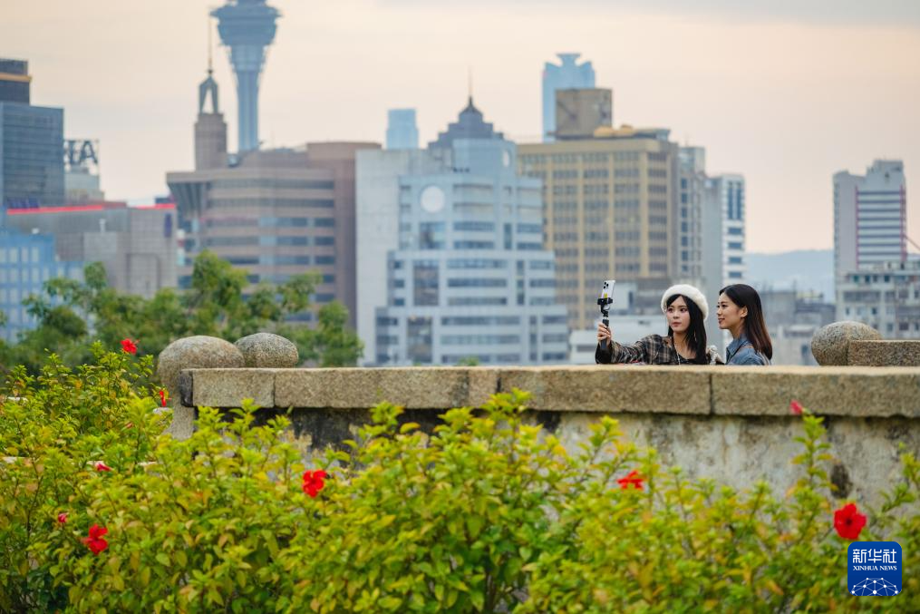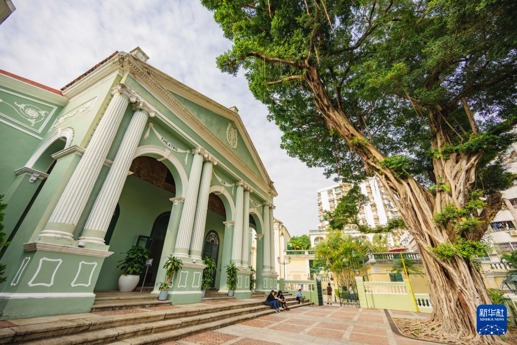 12月12日,游客坐在澳門崗頂劇院的臺階上。