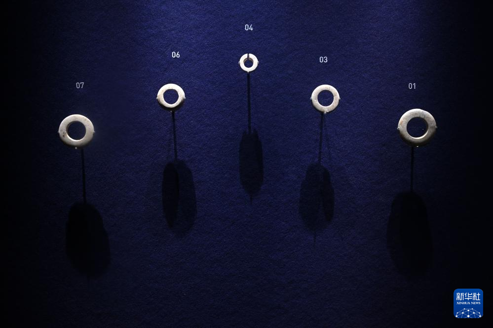 這是展出的玉環和玉玦(12月14日攝)。