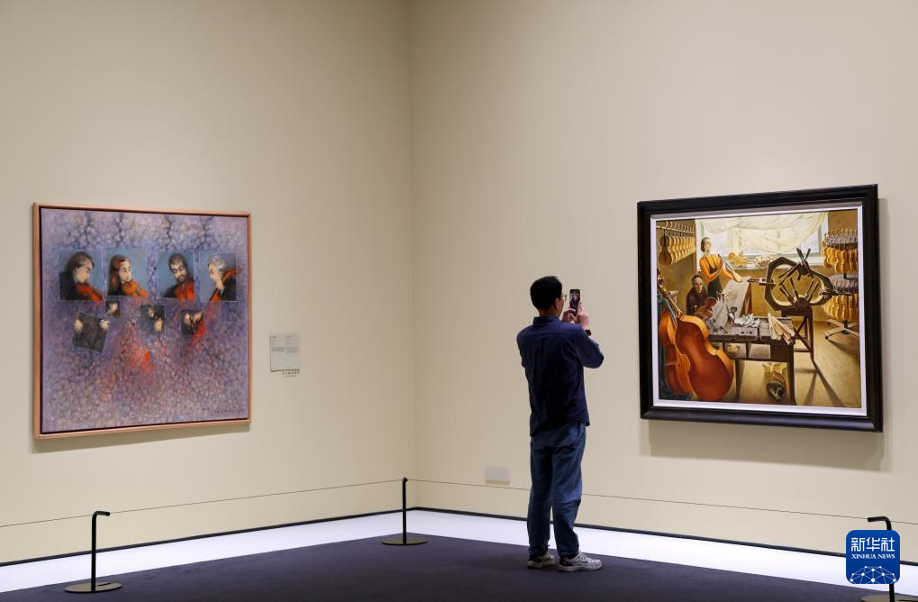 游客在廣東美術館欣賞畫作(12月6日攝)。