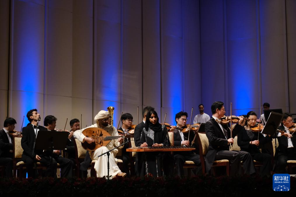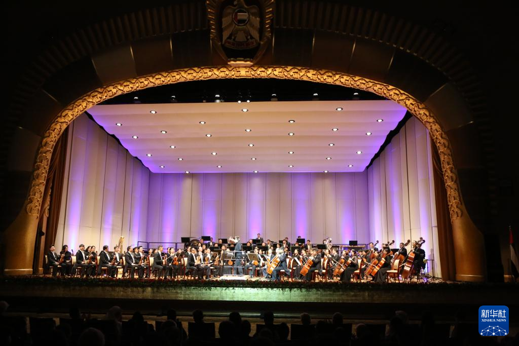 12月14日,在阿聯酋首都阿布扎比的酋長國皇宮劇院,來自中國和阿聯酋的樂手同臺演奏曲目《亞巴赫爾》。