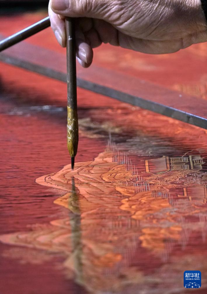 金漆鑲嵌作品通常由松木制成木胎,再施以天然大漆制成漆胎,經過彩繪、鑲嵌、雕填、刻灰、斷紋等多種工藝層層髹飾才能完成。2008年,金漆鑲嵌髹飾技藝被列入第二批國家級非物質文化遺產名錄。