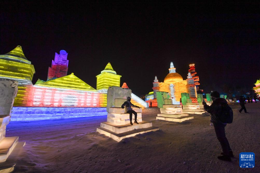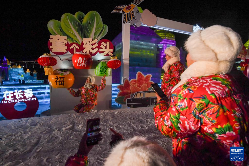 12月17日,游客在長春冰雪新天地游覽拍照。