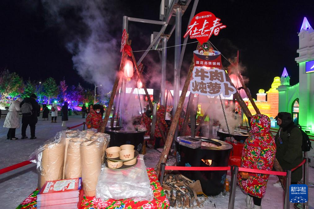 12月17日,工作人員在長春冰雪新天地制作特色美食。
