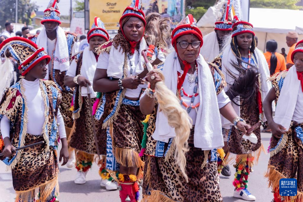 12月15日,舞蹈演員在喀麥隆西南大區首府布埃亞舉辦的西南文化節上游行。