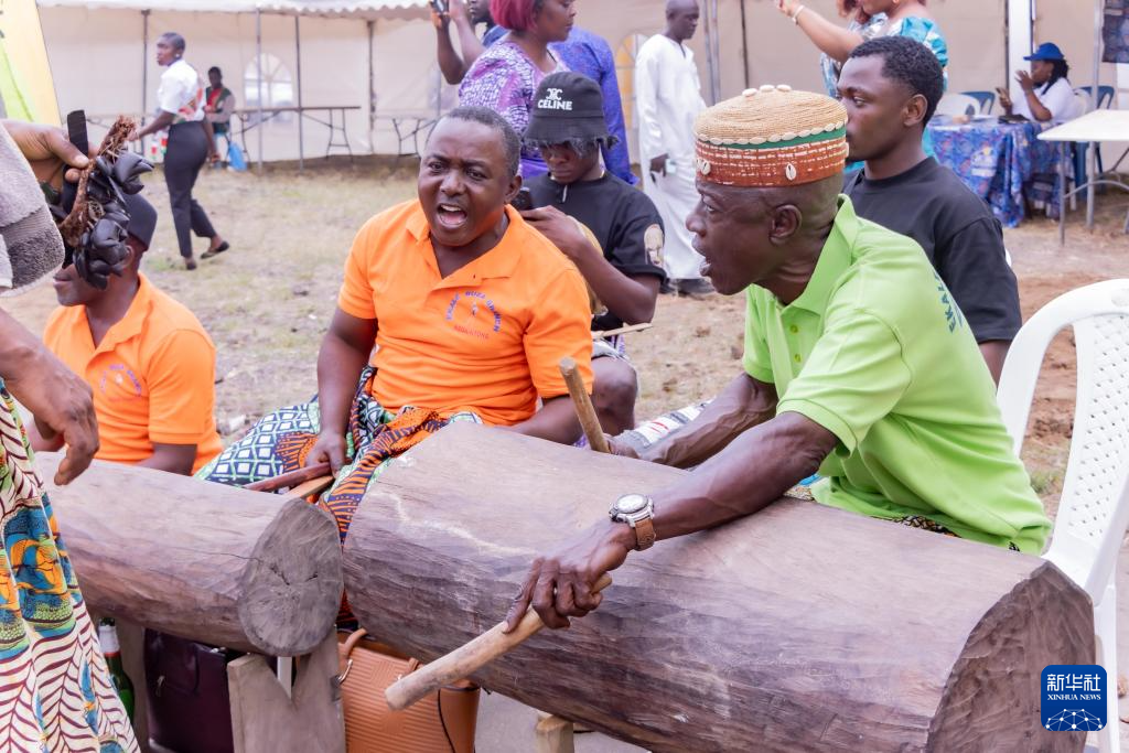 12月15日,人們在喀麥隆西南大區首府布埃亞舉辦的西南文化節上敲鼓。