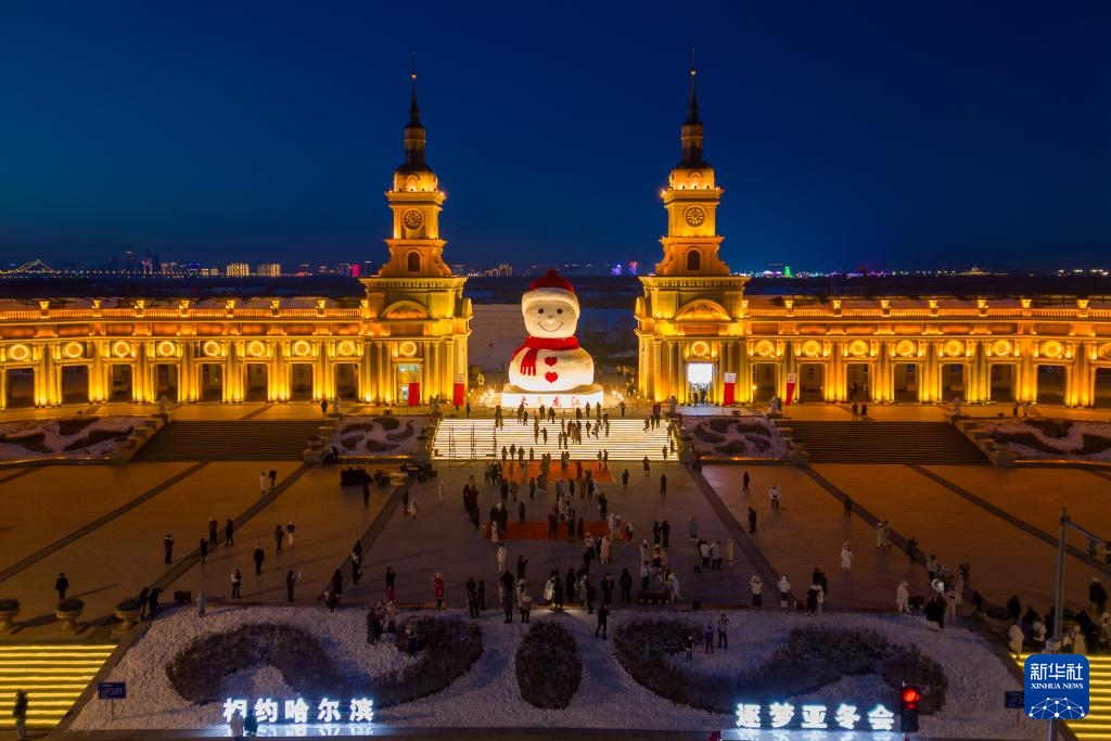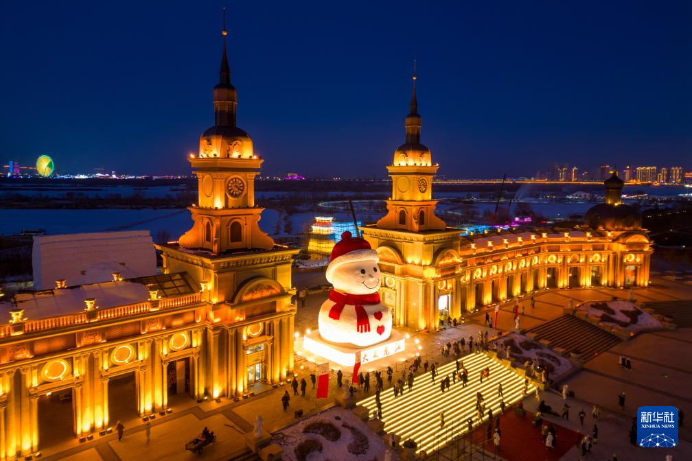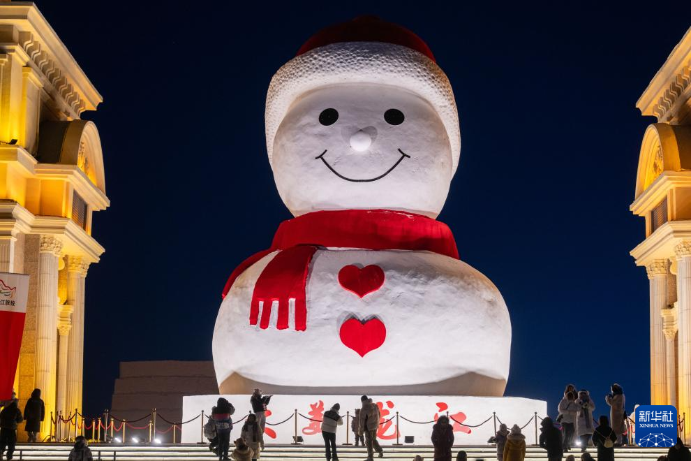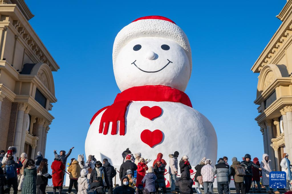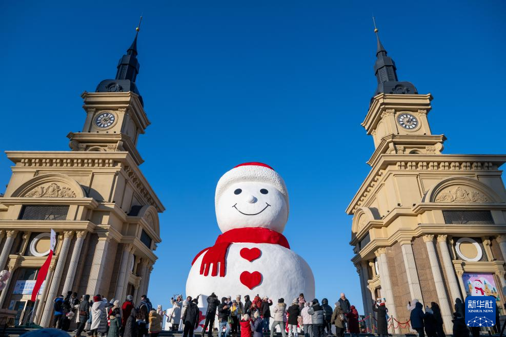 當日,哈爾濱“網紅”大雪人“回歸”松花江畔。