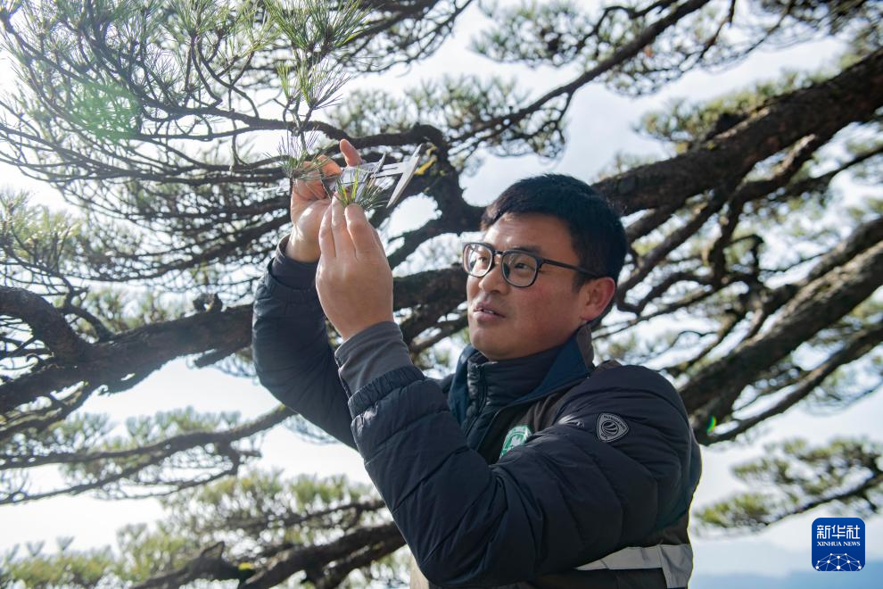黃山上還有不少古樹名木,黃山風景區管委會園林局高級工程師吳貽軍運用科學手段為它們“保駕護航”,及時消除影響樹木生長的不利因素。