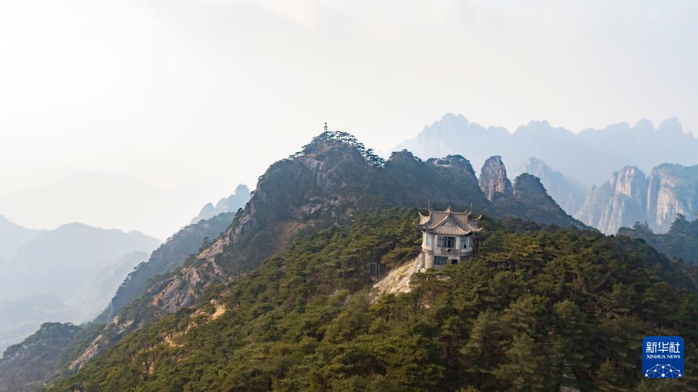 這是12月18日拍攝的黃山風景區平天矼瞭望哨(無人機照片)。