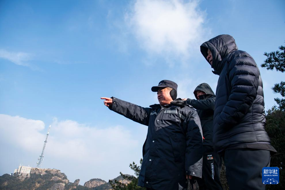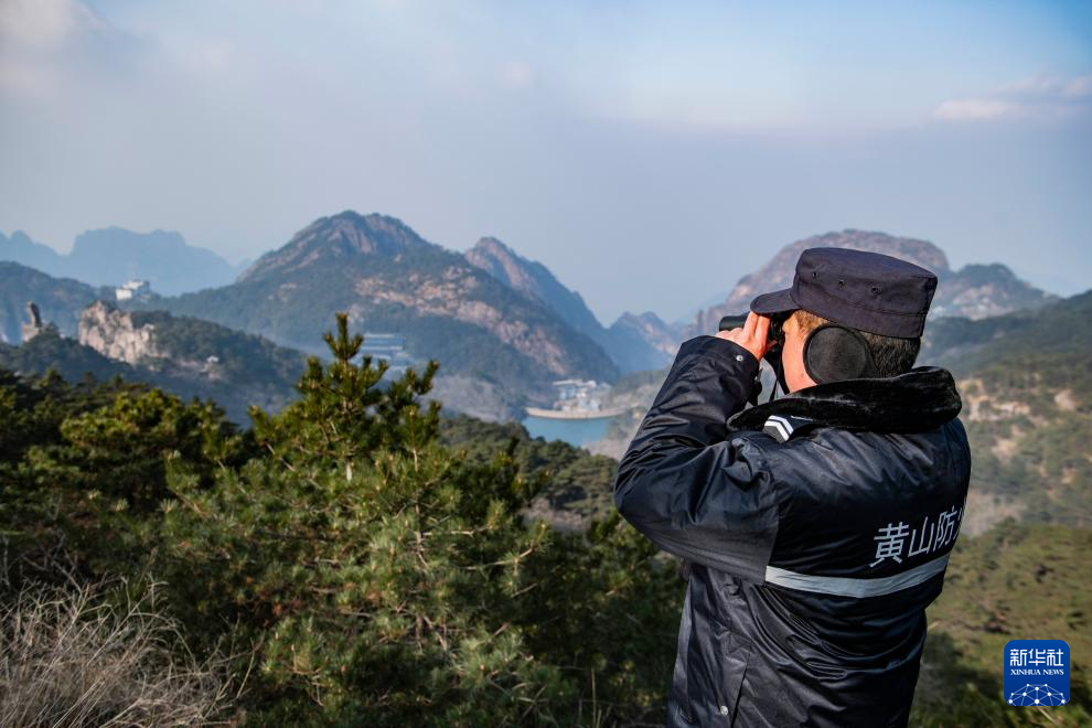 12月18日,黃山風景區管委會園林局瞭望哨防火小隊隊員在景區巡查。