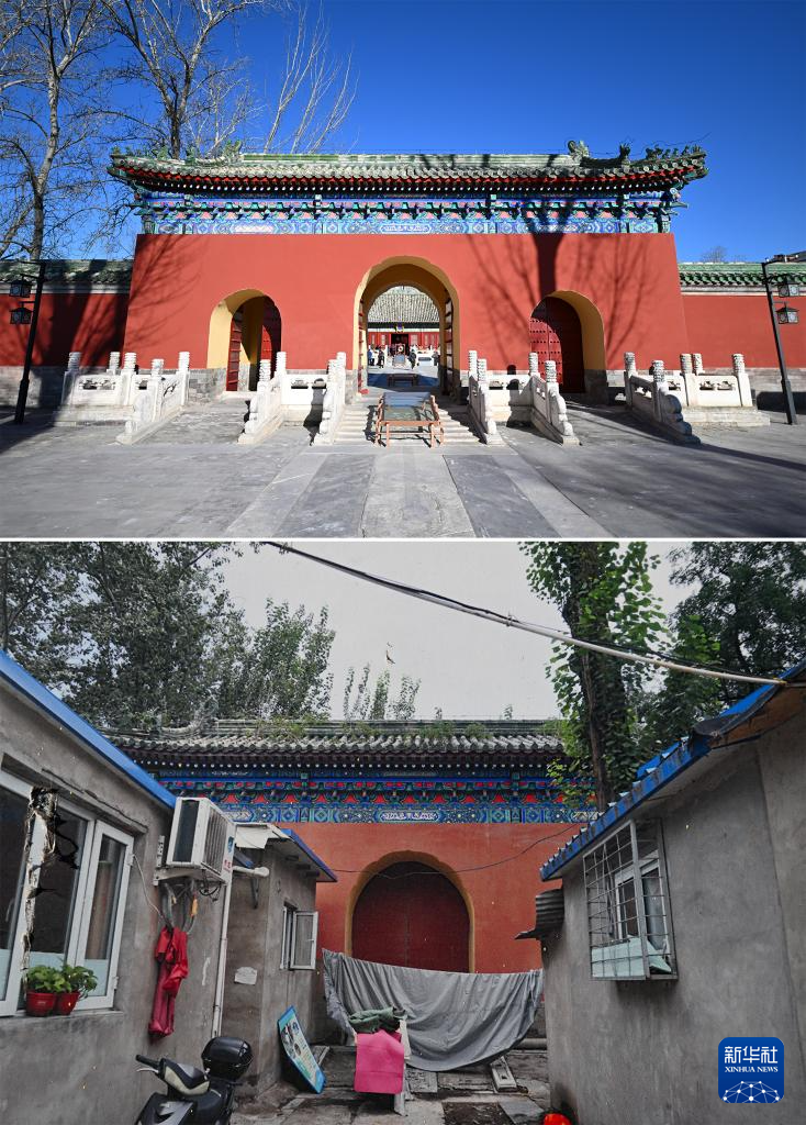 拼版照片:上圖為騰退修繕后的慶成宮內宮門;下圖為翻拍的慶成宮內宮門騰退修繕前的資料照片(12月21日攝)。