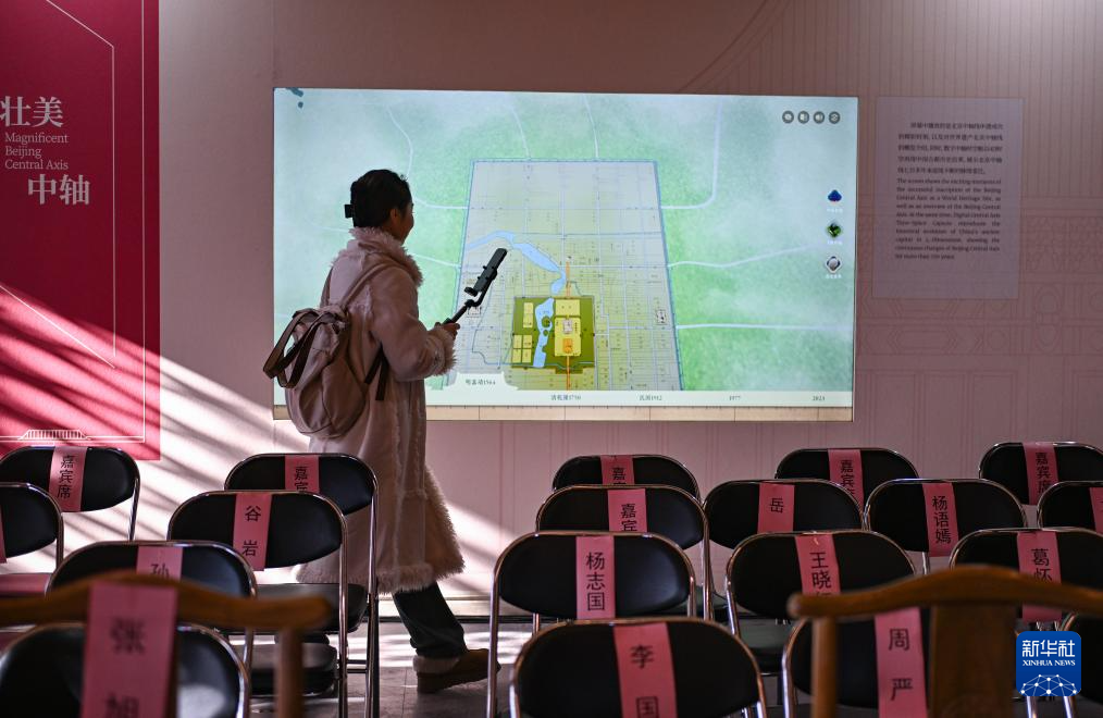 12月21日拍攝的慶成宮一進院內的“北京中軸線申遺保護工作成果展”。