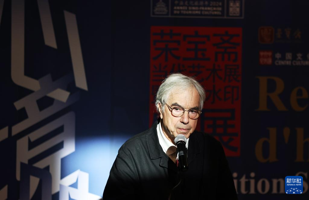 12月20日,在法國巴黎中國文化中心,法國藝術家雷米·阿龍在“心境映象——榮寶齋當代藝術展暨木版水印特展”開幕式上致辭。