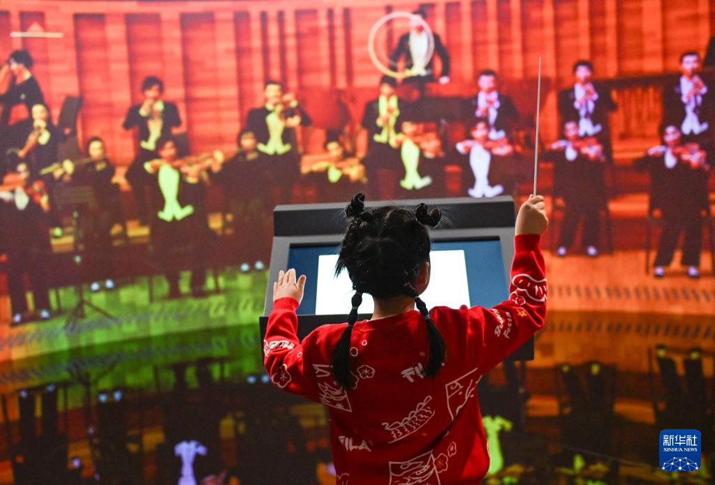 12月22日,一名小朋友在國家大劇院《藝象新生——國家大劇院數字藝術展》上體驗互動影像裝置。