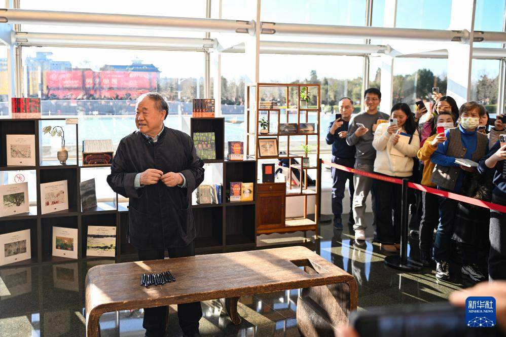 12月22日,作家莫言在國家大劇院的簽名見面會上。