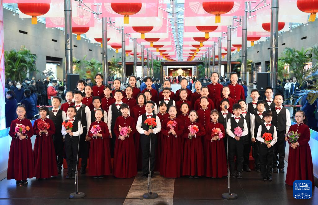 12月22日,小朋友在國家大劇院北水下廊道童聲合唱迎賓。