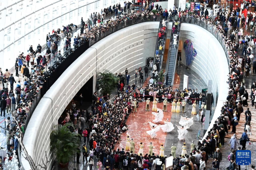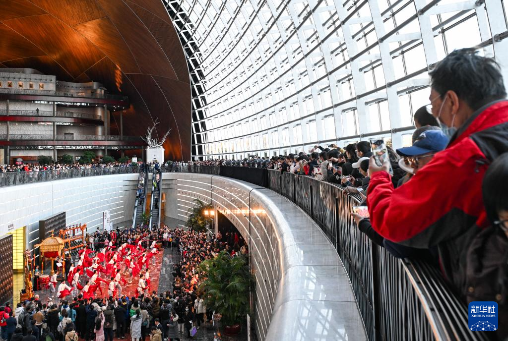12月22日,演員在國家大劇院一層公共空間表演。