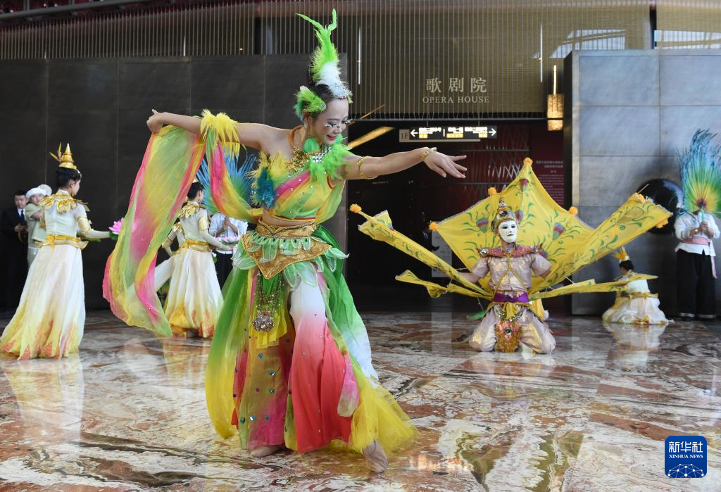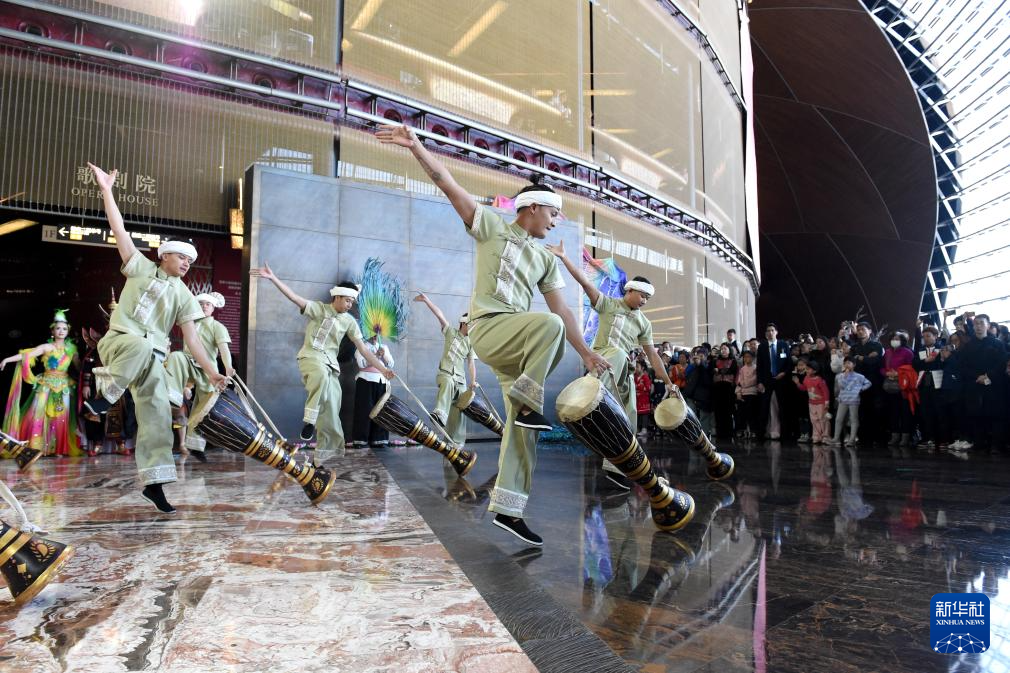 12月22日,演員在國家大劇院橄欖廳表演云南西雙版納非遺歌舞。