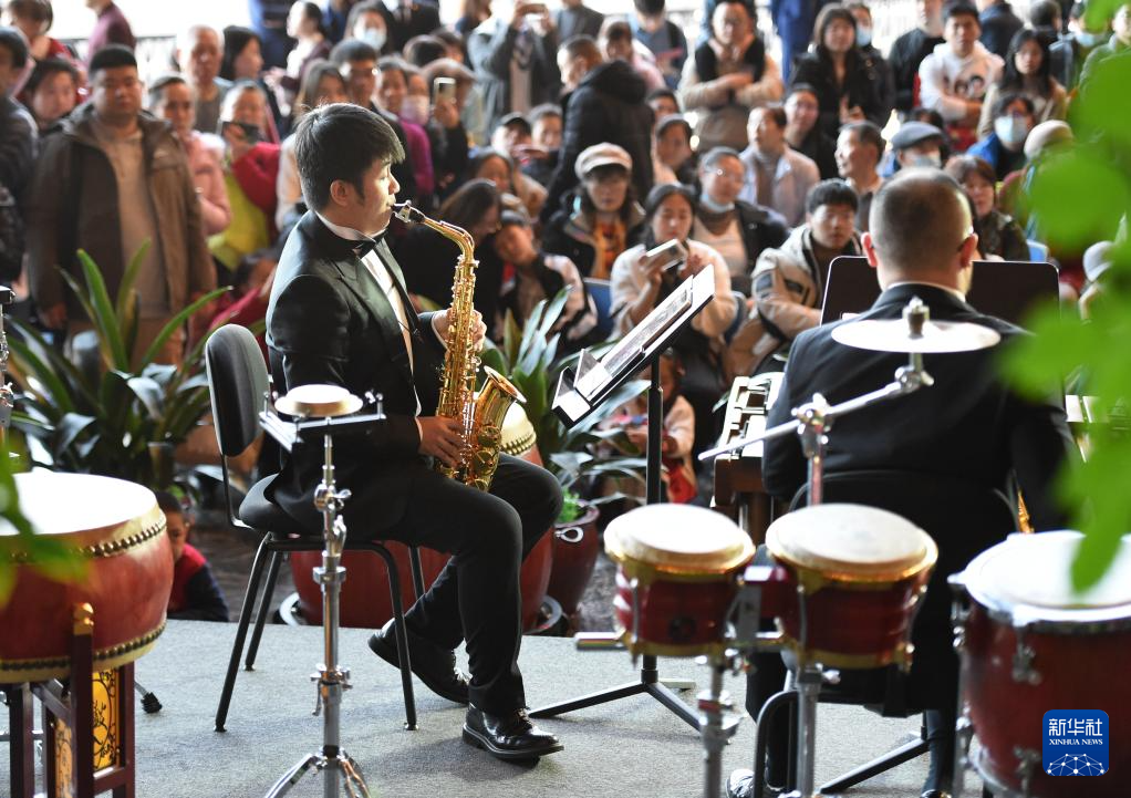 12月22日,演員在國家大劇院西咖啡廳前演奏。