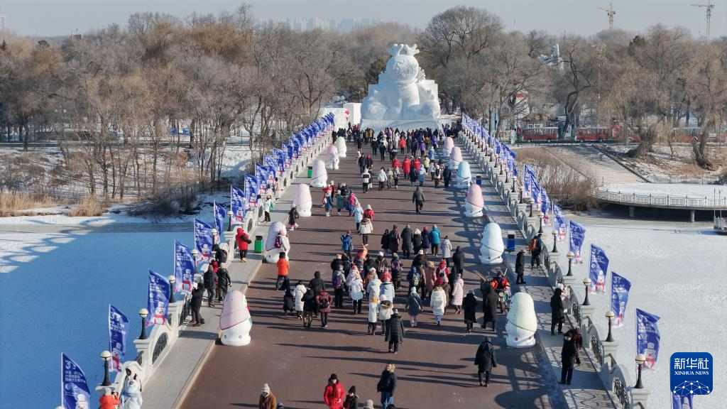 當日,第37屆太陽島國際雪雕藝術博覽會試開園。本屆雪博會以“同夢同心·冰雪傳奇”為主題,規劃面積150萬平方米,計劃建設賽事及藝術雪雕260余處,總用雪量15萬立方米。園區深度融合國風元素,重點打造6個主題景觀區和雪人IP秀、雪趣研學營2個拓展區。