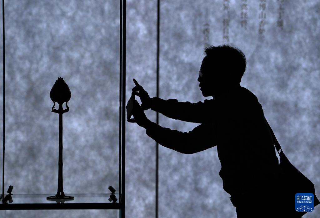2024年5月18日,觀眾在陜西歷史博物館秦漢館觀看“技與美”專題陳列上展出的西漢鎏金銀竹節銅熏爐。當日,位于西安西咸新區的陜西歷史博物館秦漢館正式開館。