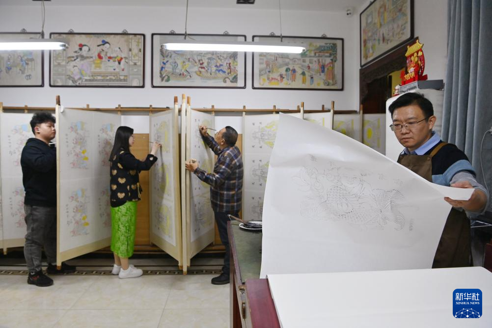 新年將至,在天津市西青區楊柳青古鎮,各家年畫店鋪都迎來趕制年畫訂單的高峰期。