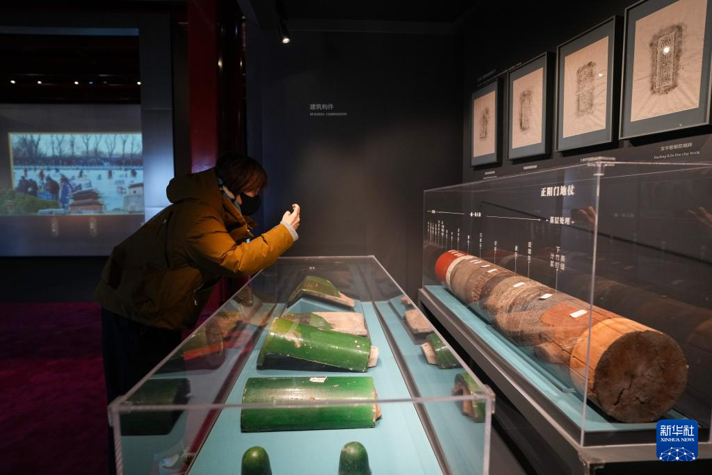 12月26日,參觀者在正陽門箭樓內參觀展出的建筑構件。