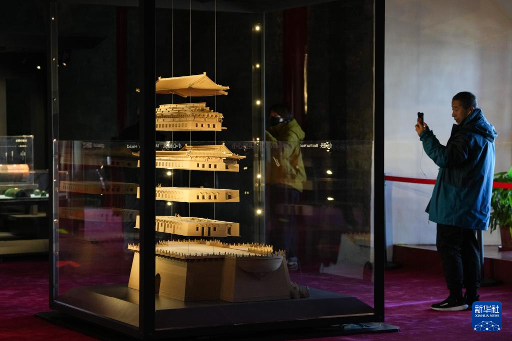 12月26日,參觀者在正陽門箭樓內參觀展出的正陽門箭樓模型。