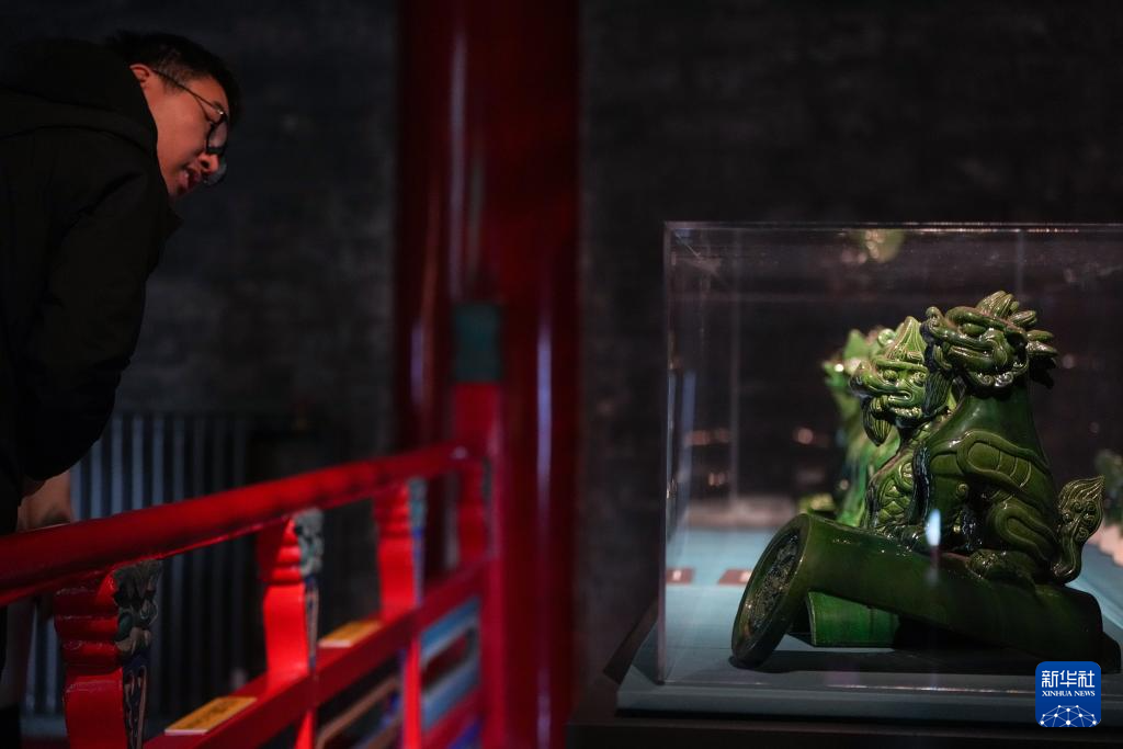 12月26日,參觀者在正陽門箭樓內參觀展出的正陽門脊獸。