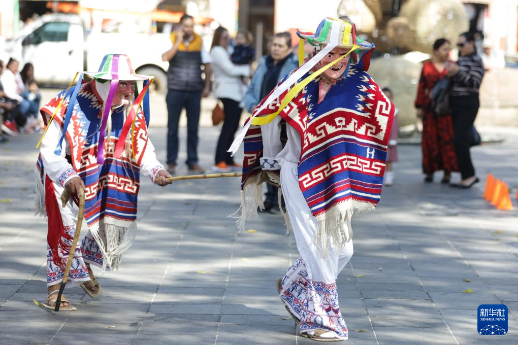 12月7日,在墨西哥米卻肯州的帕茨夸羅,舞者表演“老者之舞”。