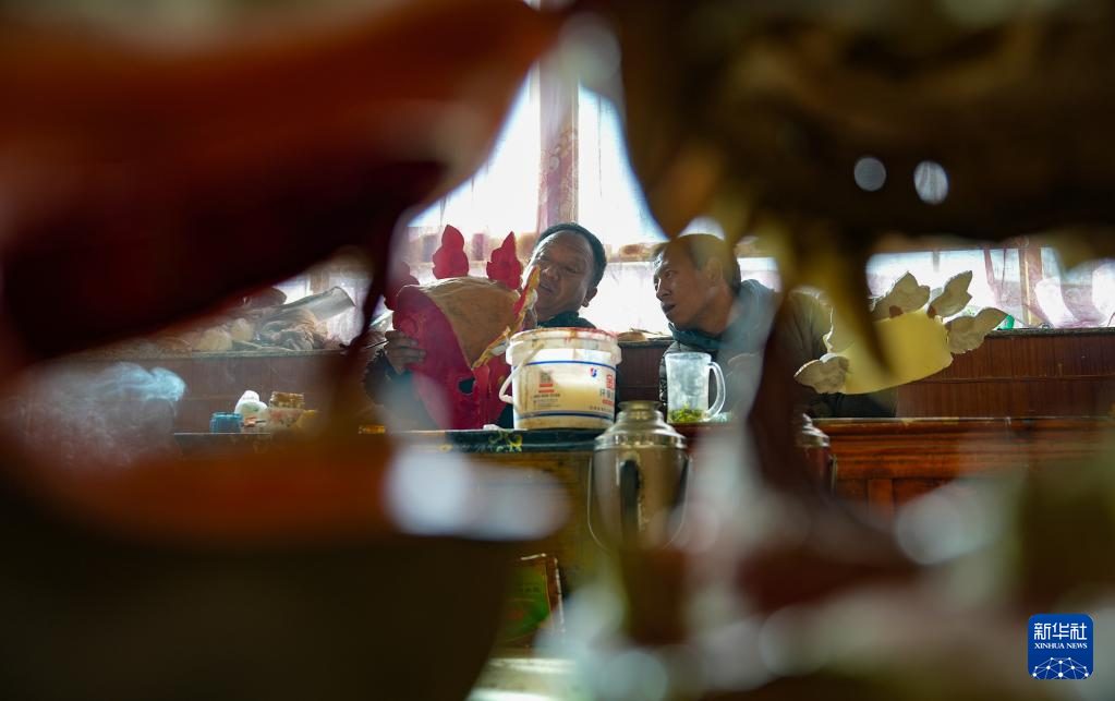 12月9日,拉薩布制面具制作技藝西藏自治區級非遺傳承人西洛(中)和同事交流西藏傳統面具制作心得。西洛是拉薩布制面具制作技藝的西藏自治區級非遺傳承人,他制作的面具廣泛運用于藏戲表演中。2012年,在政府的扶持下,西洛創辦了拉薩市達孜區雪鄉扎西崗傳統手工藝合作社。近年來,合作社不斷吸納當地群眾學習面具制作技藝,不僅為當地群眾提供就業機會,同時也助力非物質文化遺產的保護和發展。