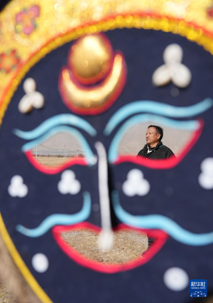 12月9日,拉薩布制面具制作技藝西藏自治區級非遺傳承人西洛在合作社門前的空地上和同事一起檢查做好的西藏傳統面具。西洛是拉薩布制面具制作技藝的西藏自治區級非遺傳承人,他制作的面具廣泛運用于藏戲表演中。2012年,在政府的扶持下,西洛創辦了拉薩市達孜區雪鄉扎西崗傳統手工藝合作社。近年來,合作社不斷吸納當地群眾學習面具制作技藝,不僅為當地群眾提供就業機會,同時也助力非物質文化遺產的保護和發展。