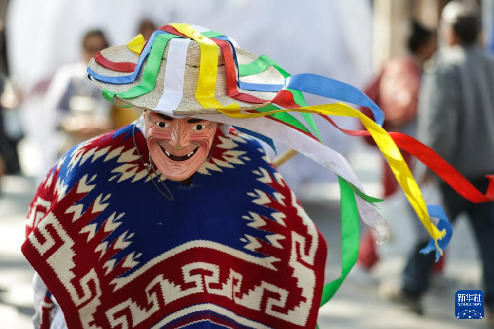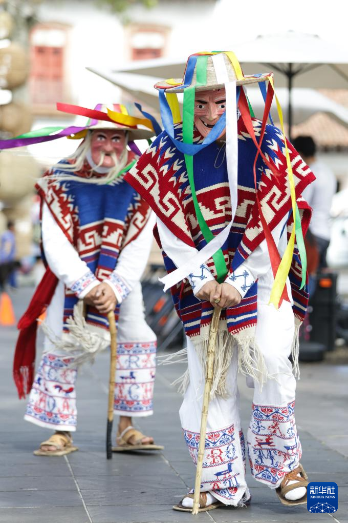 墨西哥的面具舞也是一種具有濃郁當地特色的傳統舞蹈。舞蹈中的面具制作精美,色彩鮮艷,往往具有象征意義,代表著不同的角色和身份。墨西哥面具舞中的“老者之舞”是墨西哥米卻肯州最具代表性的傳統舞蹈之一,起源于普列佩查原住民文化,據說發展自墨西哥獨立之前人們向心目中的神明祈求豐收的儀式。舞者表演“老者之舞”時往往戴著略顯夸張的面具,面具通常帶有皺紋、胡須和微笑的表情,借以塑造一種看似滑稽、幽默卻充滿智慧的形象。