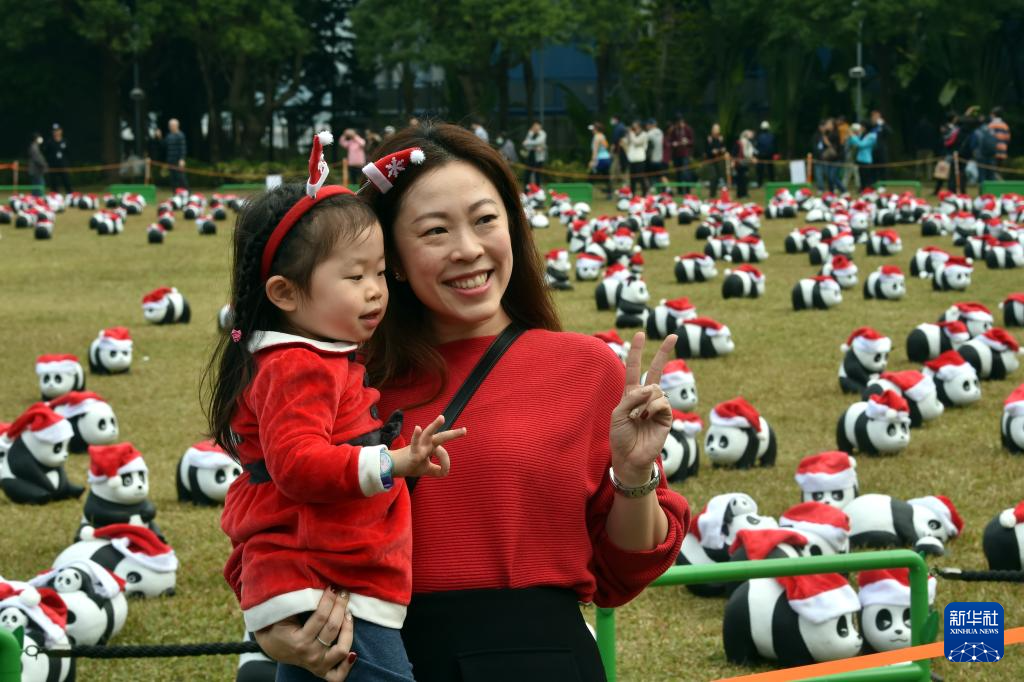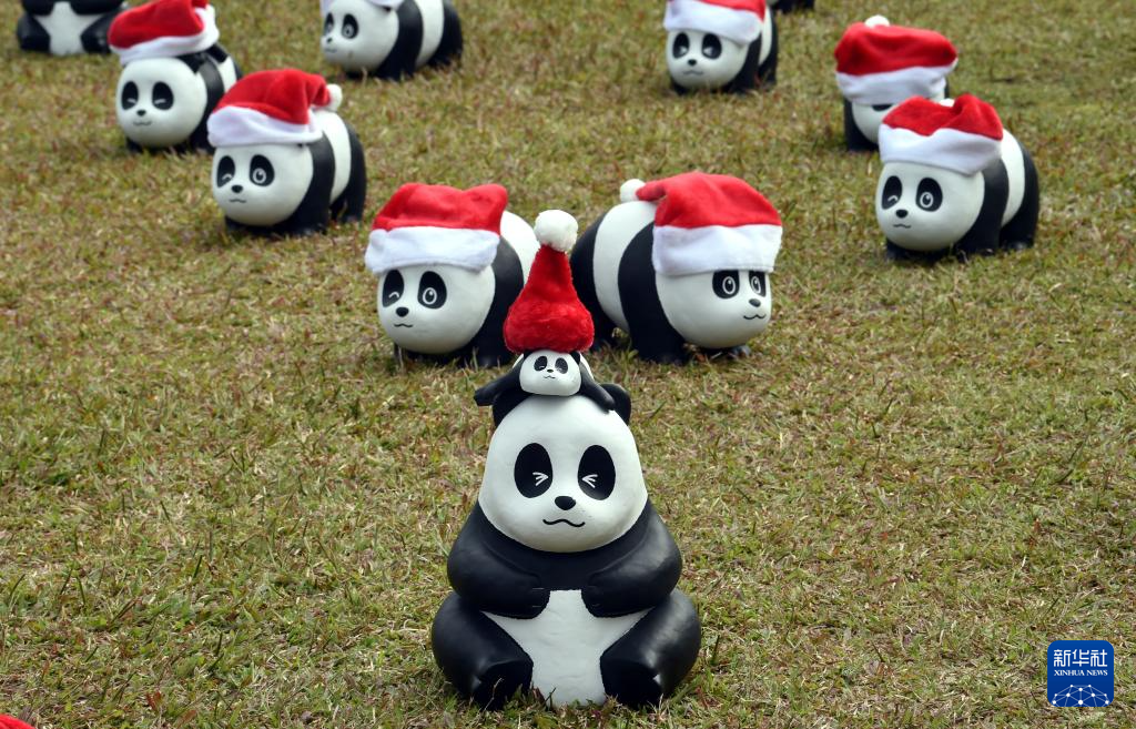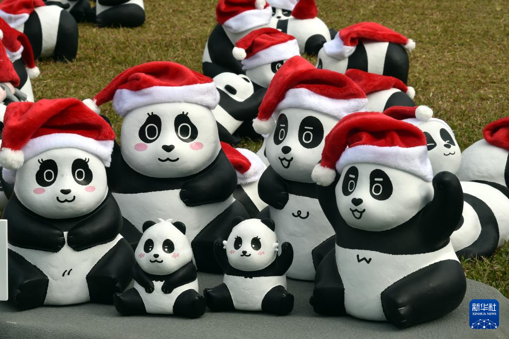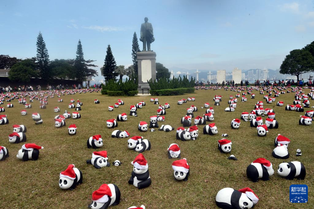 12月25日,大熊貓雕塑在香港中山紀念公園草地上展出。