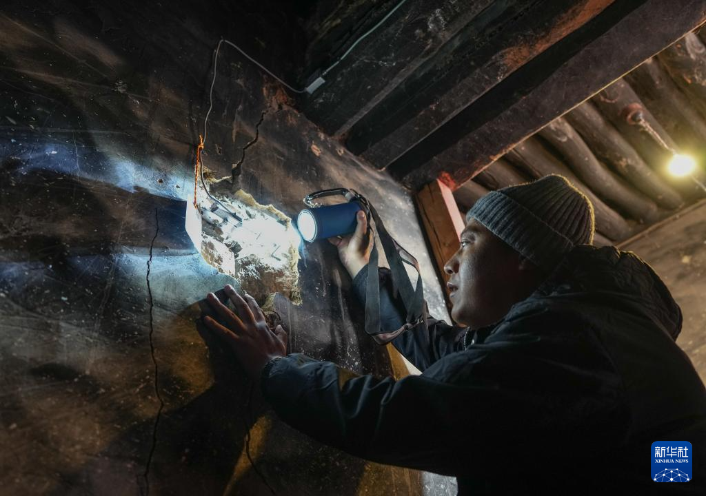 12月4日,布達拉宮監測中心的工作人員旦增旺堆巡查布達拉宮地壟傳感器設備。
