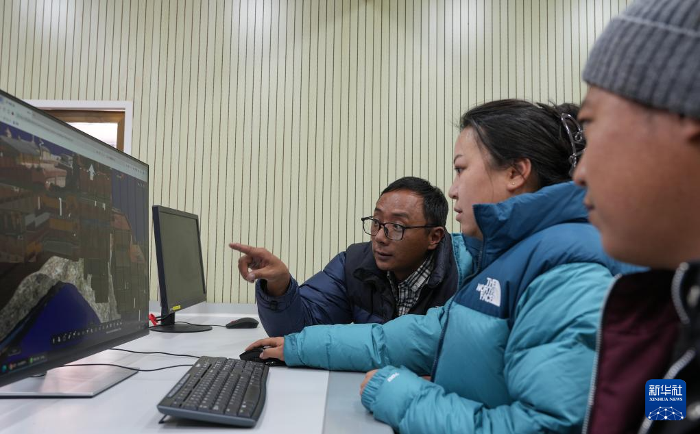 12月4日,布達拉宮監測中心的工作人員在查看布達拉宮三維圖像。