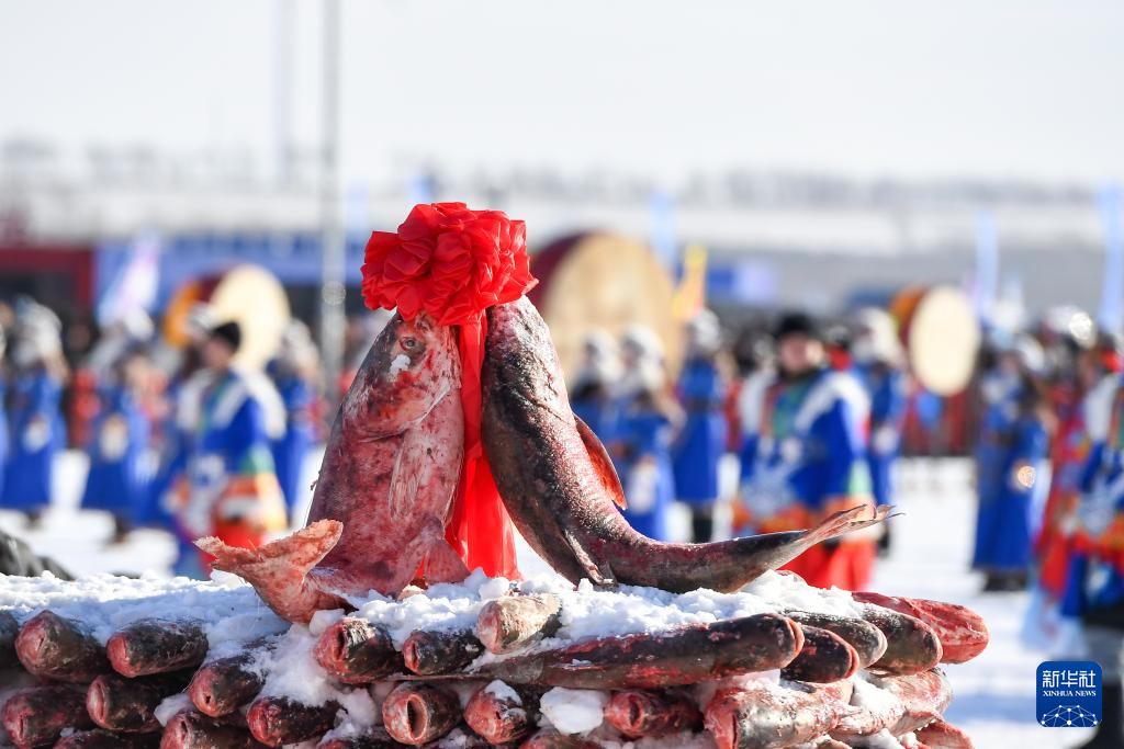 12月28日拍攝的查干湖冬捕“祭湖醒網”儀式現場。