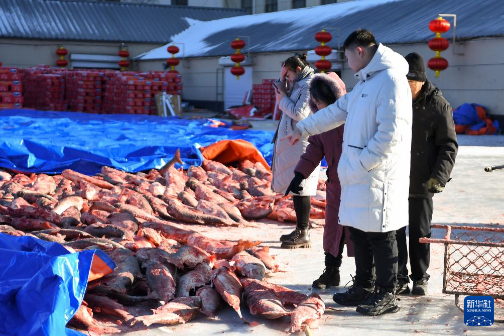 12月27日,人們在查干湖漁場超市選購查干湖魚。