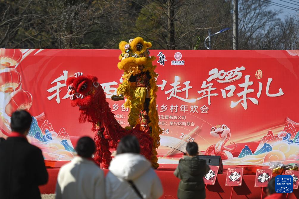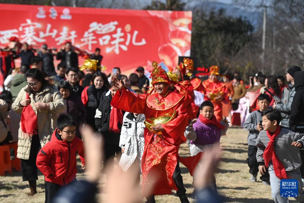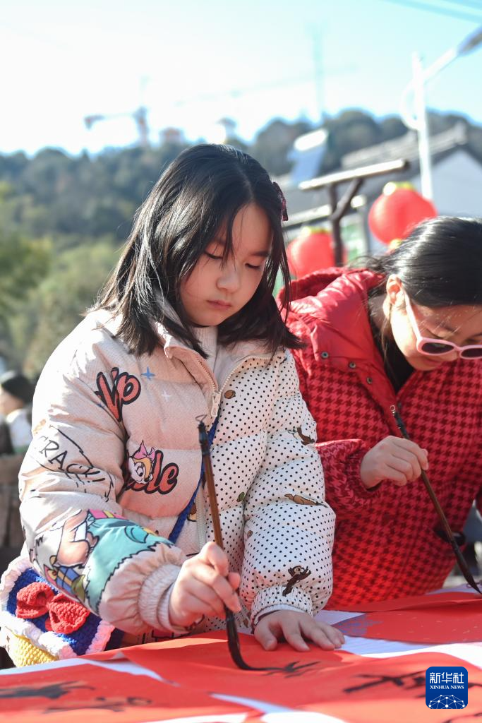 新年臨近,浙江省湖州市吳興區“我在西塞山趕年味兒”鄉村聯歡會在妙西鎮龍山村舉行,游客與村民一起看巡游、寫春聯、品美食,體驗鄉村傳統民俗。