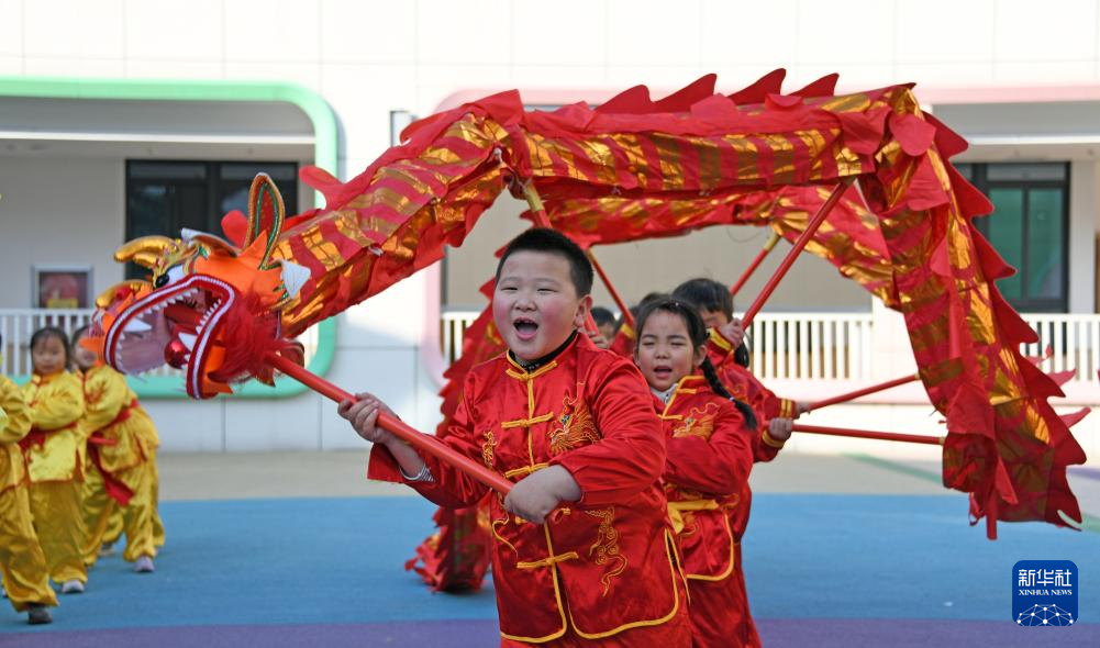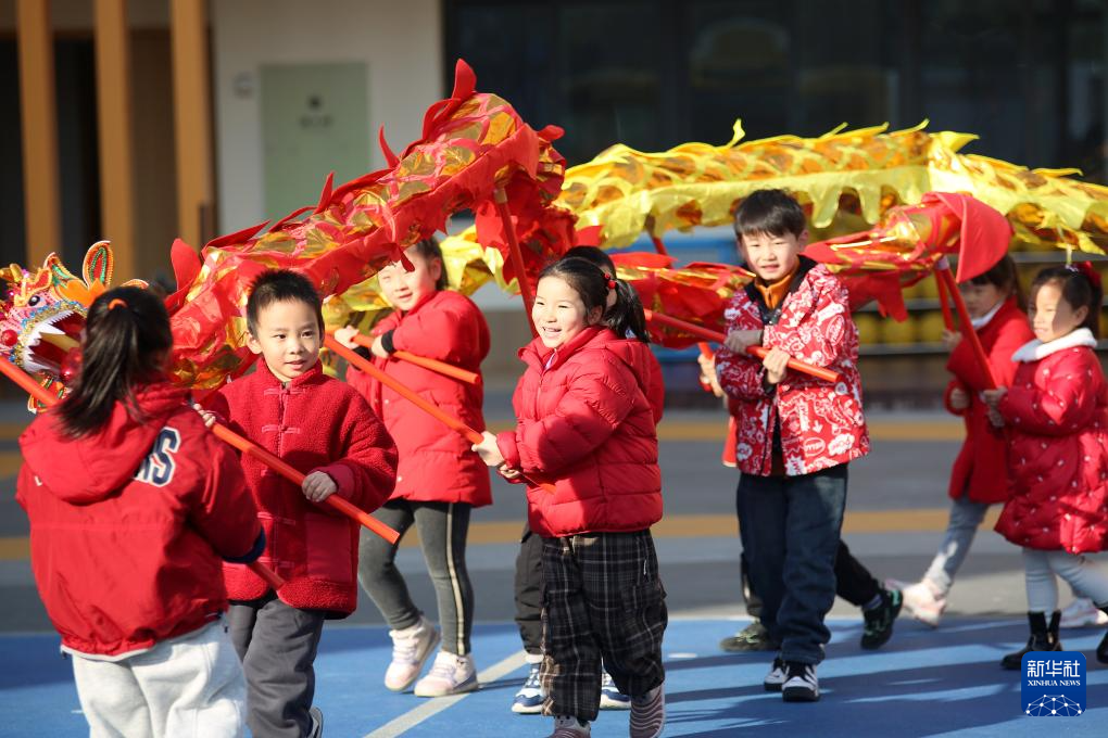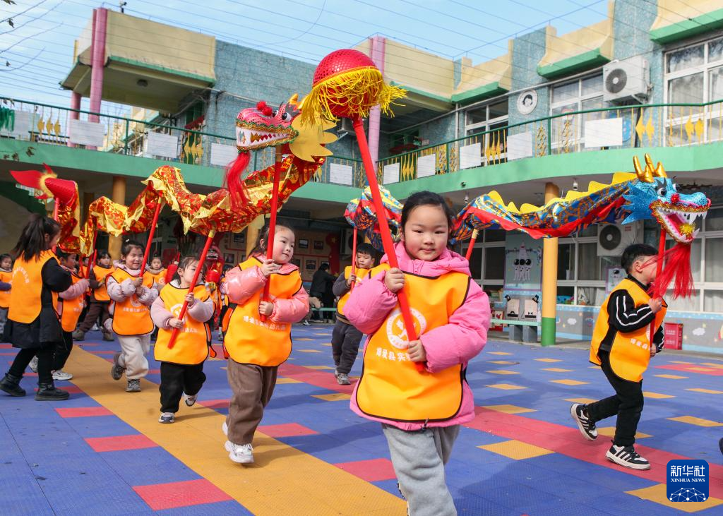 12月30日,河南省焦作市博愛縣實驗幼兒園的孩子們表演舞龍迎新年。