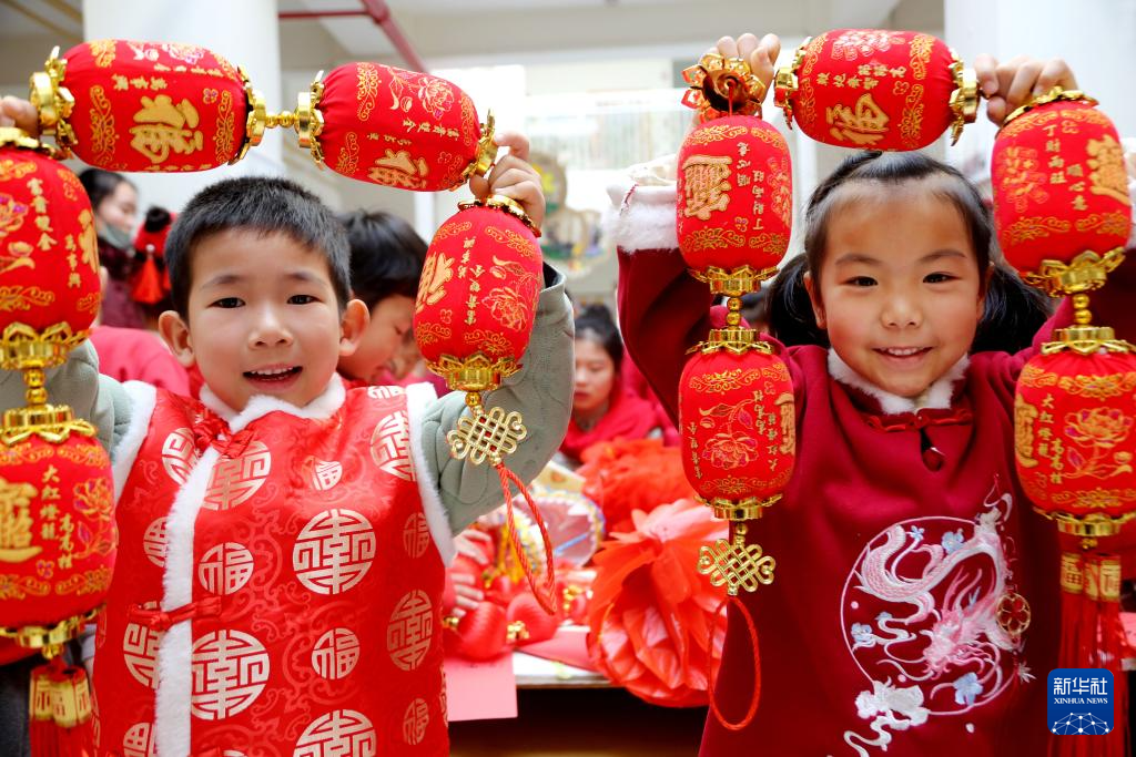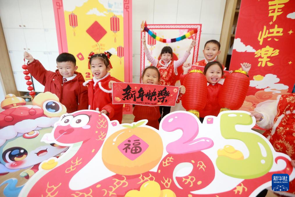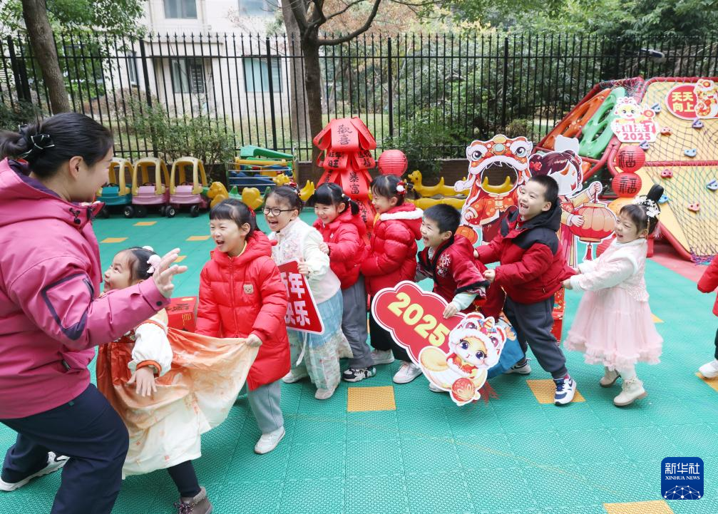 12月30日,湖北省武漢市洪山區實驗寄宿幼兒園教師帶領孩子進行“迎新年送祝?!钡挠螒蚧顒?。