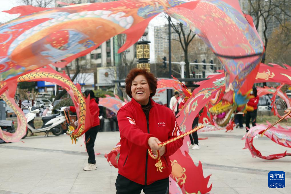 12月30日,在河南省洛陽市汝陽縣劉伶廣場,汝陽縣鞭陀龍協會成員在舞龍迎新年。