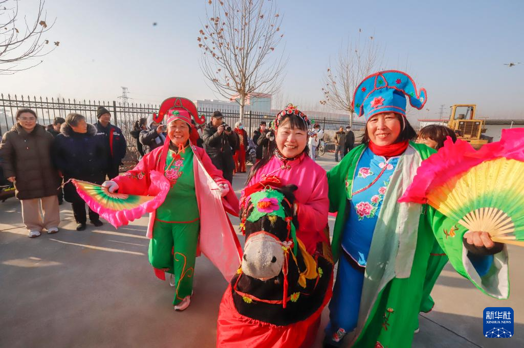 12月30日,河北省遵化市蘇家洼鎮的民間藝人為村民表演迎新年民俗節目。